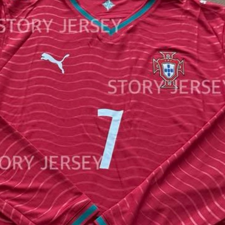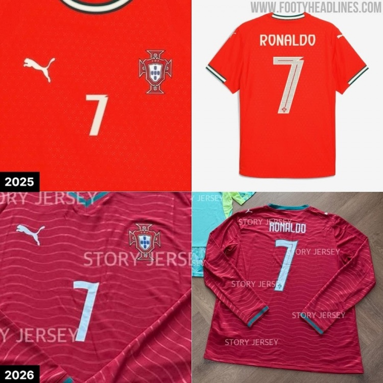 这种波浪形的设计灵感几乎可以肯定源自葡萄牙2026年主场球衣上的波浪图案。这使得球衣设计与字体之间形成了完美和谐的搭配。