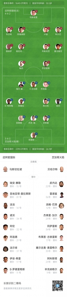 迈阿密国际替补:34-诺沃、15-瑞安-赛勒、32-阿伦、17-弗雷、37-法尔肯、81-圣地亚哥·莫拉莱斯、21-阿连德、14-法法、11-B·罗德里格斯